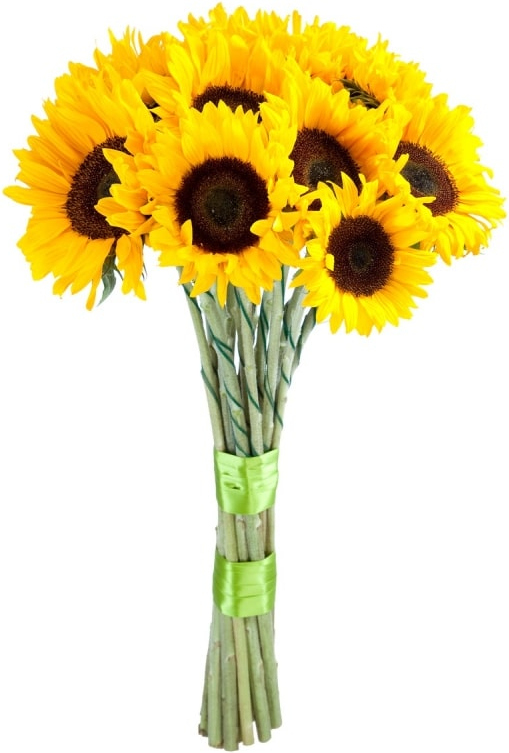 3 подсолнуха, две атласные ленты5 подсолнухов, две атласные ленты9 подсолнухов, две атласные ленты