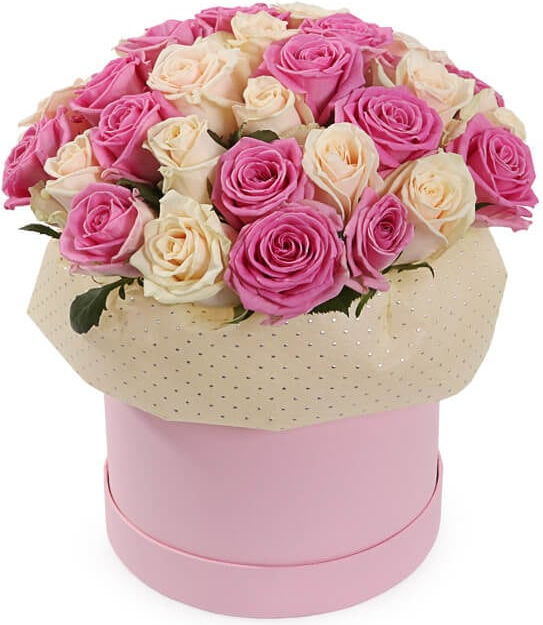 Букет из розовых и кремовых роз никогда никого не оставит равнодушным. Розу всегда называли королевой цветов за её невероятную красоту, нежность и элегантность и она всегда считалась символом любви и красоты. Оригинальная упаковка в этой композиции служит прекрасным дополнением к этим великолепным цветам.